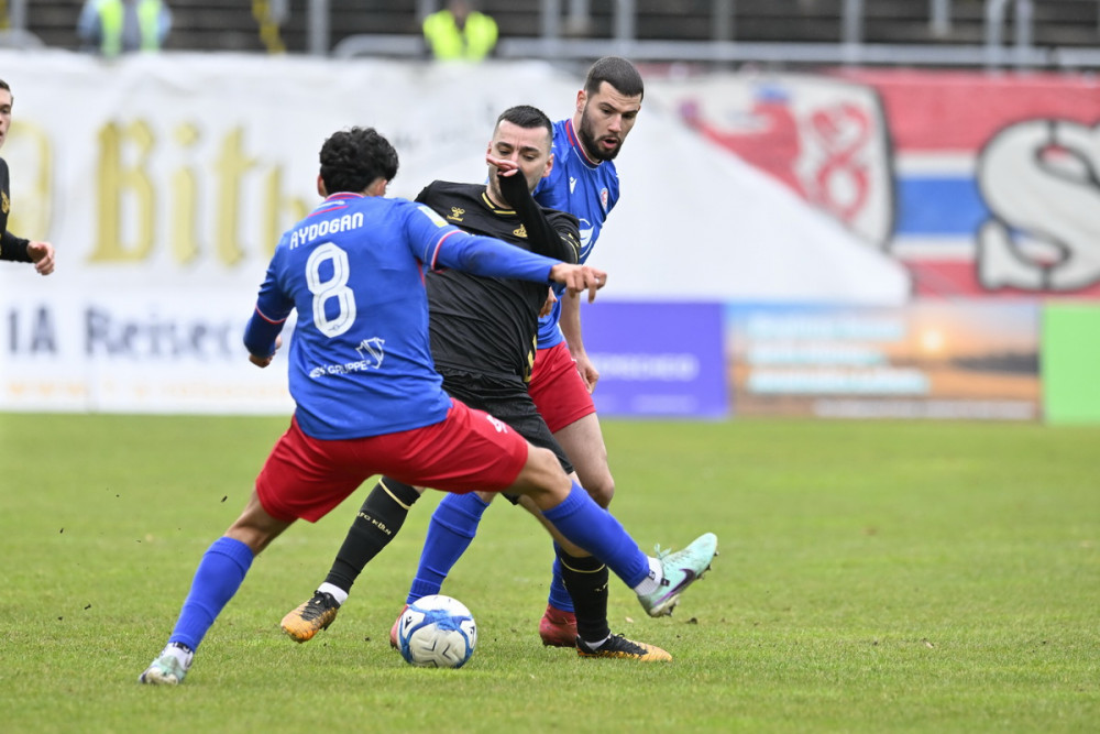 82. Minute: Fehr liegt am Boden, doch der Ball wird nun rausgespielt. Dann haut Aydogan seinen Gegner um und sieht erst Gelb und fliegt mit Rot vom Platz.