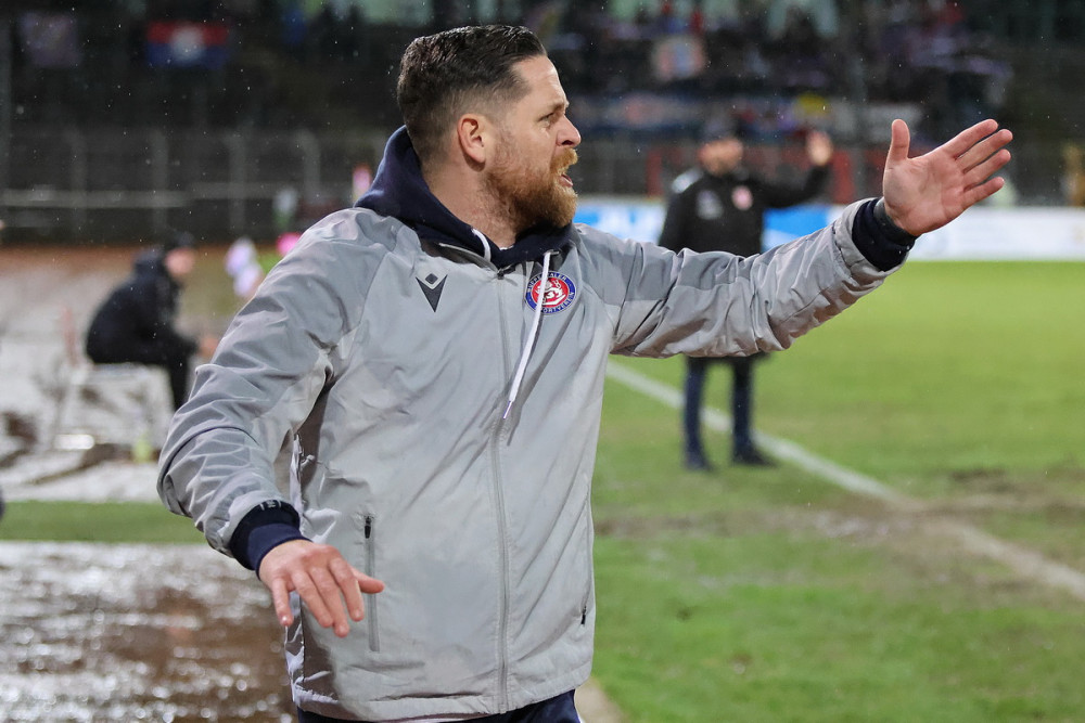 45.+8. Minute: Mike Wunderlich motiviert seine Jungs von außen, die letzten Sekunden laufen. Oder?