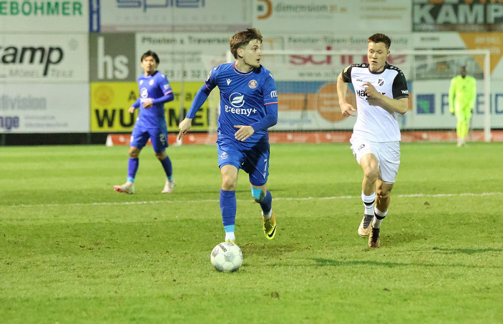 14. Minute: Da ist die Großchance, und Neuzugang Hirschberger hat sie. Doch er scheitert aus 12 Metern frei an Jackmuth. Trotzdem blitzte hier auf, warum der WSV ihn geholt hat, zumindest auf Leihbasis.