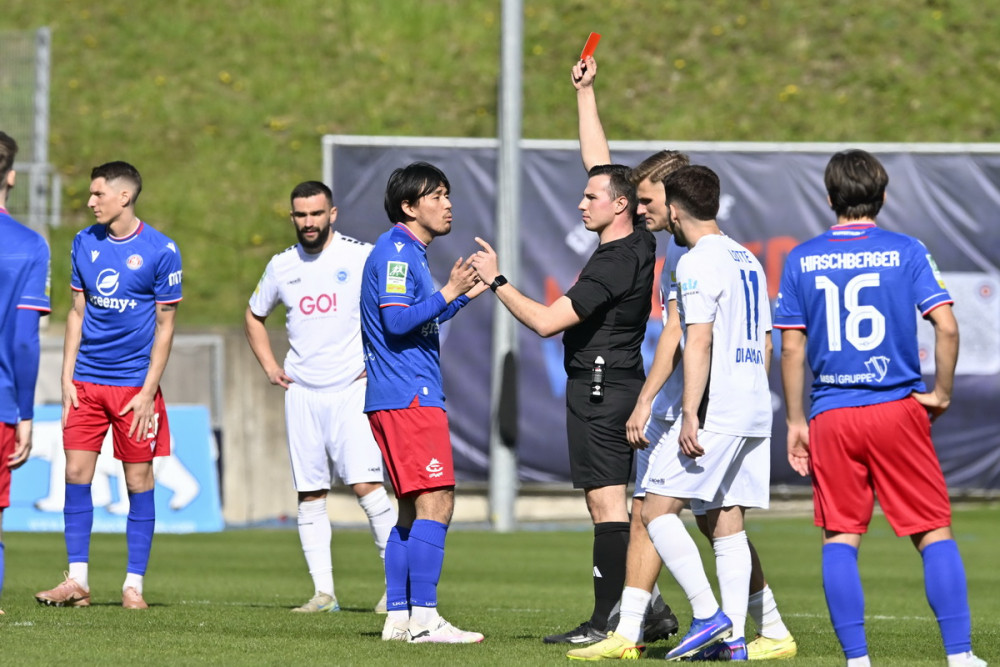 83. Minute: Zur Wahrheit gehört nun, dass der Ball nicht ins Aus gespielt wurde, als Fehr schon am Boden lag. Aydogan gingen dann die Nerven durch. Auch Mikic sieht noch Gelb.