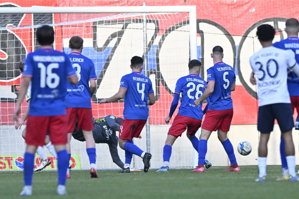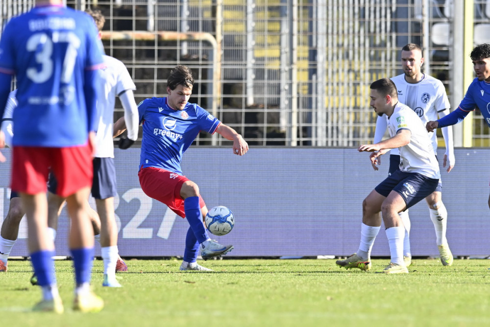 49. Minute: Fast der Doppelschlag für Rot-Blau. Durgun setzt sich super auf links durch und flankt auf Santo, der im Fallen den Ball an den linken Pfosten setzt.