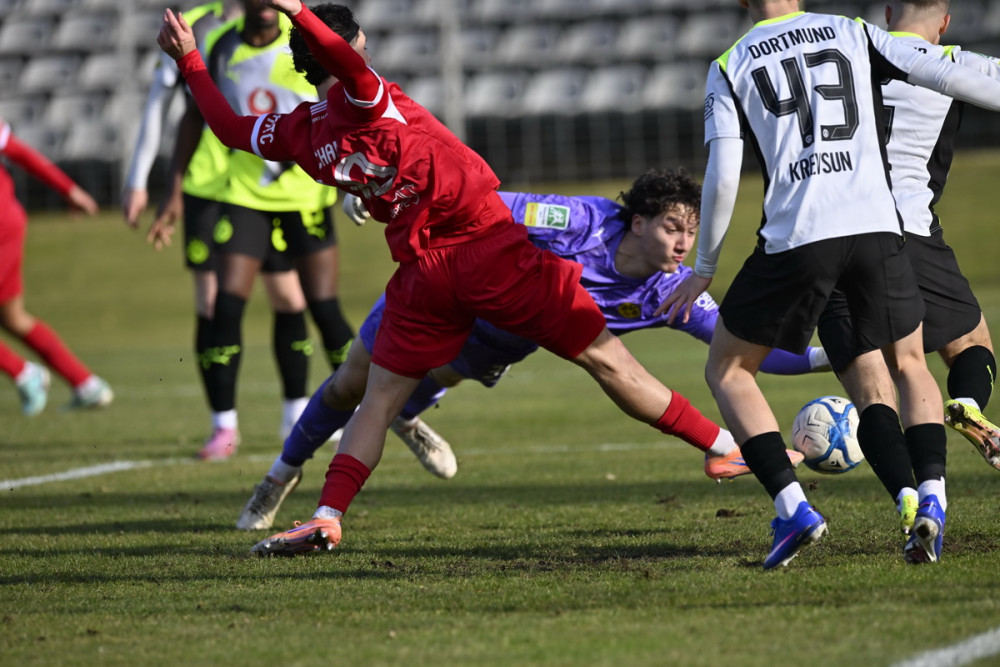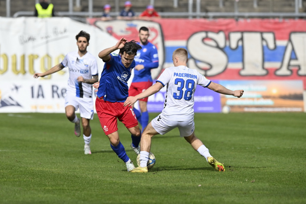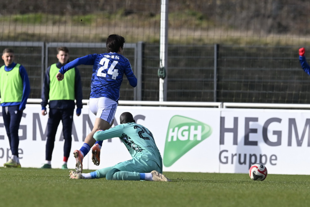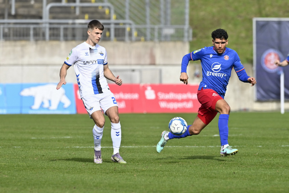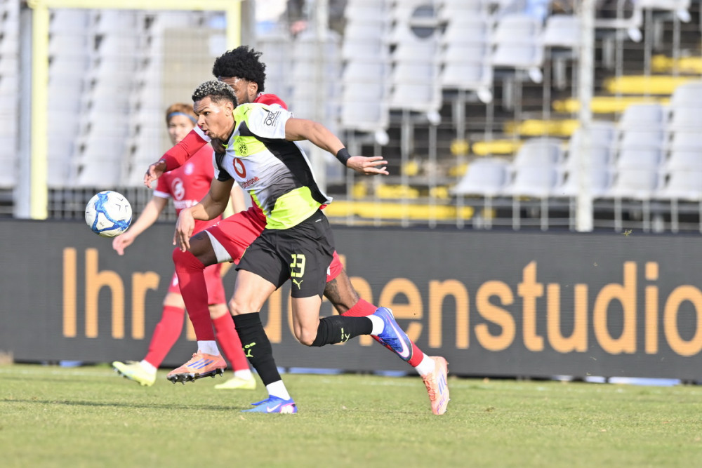 36. Minute: Hirschberger kann das Spiel schnell machen, doch sein Ball auf Bouzraa ist zu steil, sein Sturmpartner kann den Ball nicht erreichen.