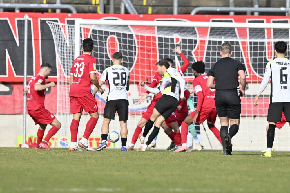 56. Minute: Klares Foul an Schaub im Dortmunder Strafraum von Benkara, der sich selber dabei verletzt. Die Pfeife bleibt jedoch stumm. Da kann man gerne Elfmeter geben.