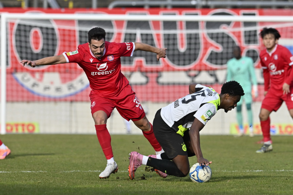 2. Minute: Erstes Foul von Büyükarslan an Stojanovic, die erste Begrüßung beim WSV.