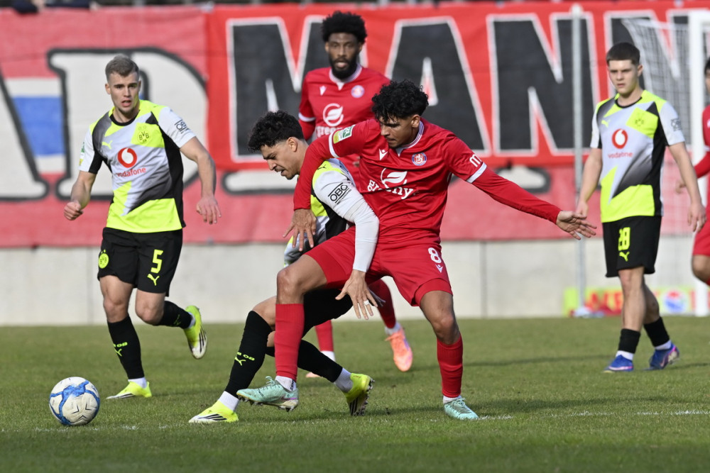 12. Minute: Dortmund mal über rechts, doch Dervisevic macht es gut und läuft seinen Gegner ab, Abstoß für den WSV.