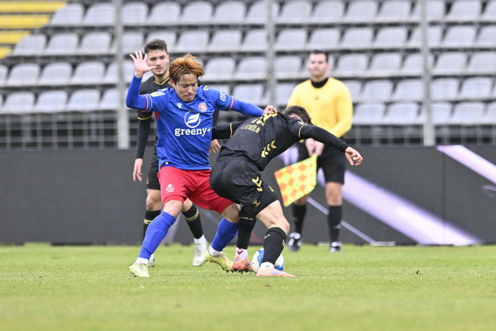 45.+1. Minute: Toller Ball von Schaub auf Nishimura, der kurz vor der Außenlinie Bouzraa bedient. Doch der haut aus gut sieben Metern den Ball in Richtung Nordkurve. Das muss die Führung sein. Ist sie nicht, und danach ist Pause: Ohne Tore geht es in die Kabinen.